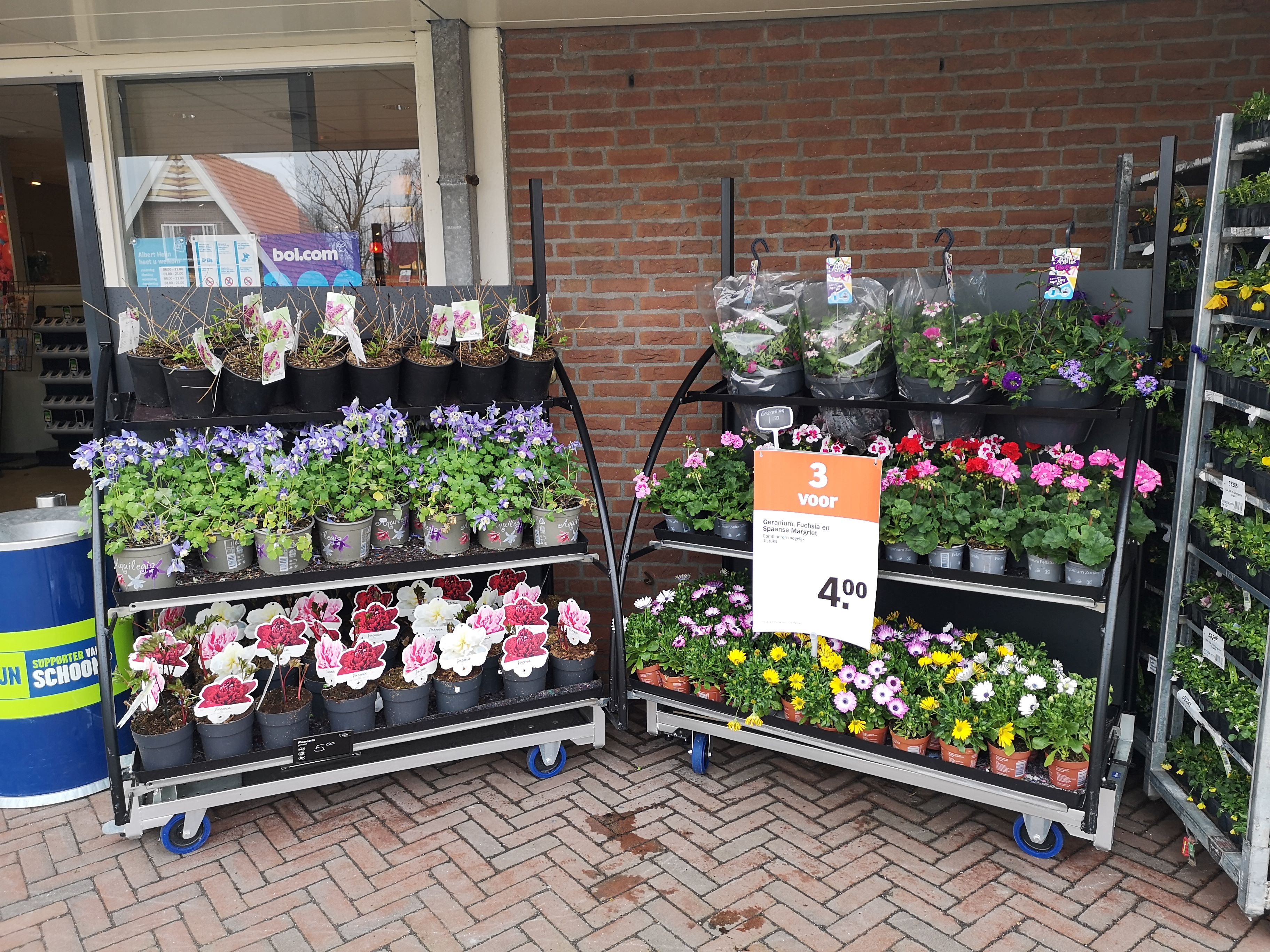 Nach der Übernahme der Deen-Formel war Albert Heijn auf der Suche nach Möbeln für die Außenpräsentation seiner Pflanzen und Blumen. Da das Sortiment im Laufe der Saison stark variiert, war eine flexible, modulare Lösung gefragt. Es war auch sehr wichtig, dass die mobilen Wagen geräuschlos bewegt werden konnten (dies geschieht jeden Tag sehr früh und muss daher leise erfolgen) und die Wagen mussten mit einem Bremssystem ausgestattet sein. Zu diesem Zweck wurden sowohl das Horti-Display als auch der Horti-Fllower mit unseren geräusch- und vibrationsfreien Rädern des Typs 4 verwendet. Die Wagen werden durch unsere robuste Bremse für dänische Wagen an ihrem Platz gehalten.