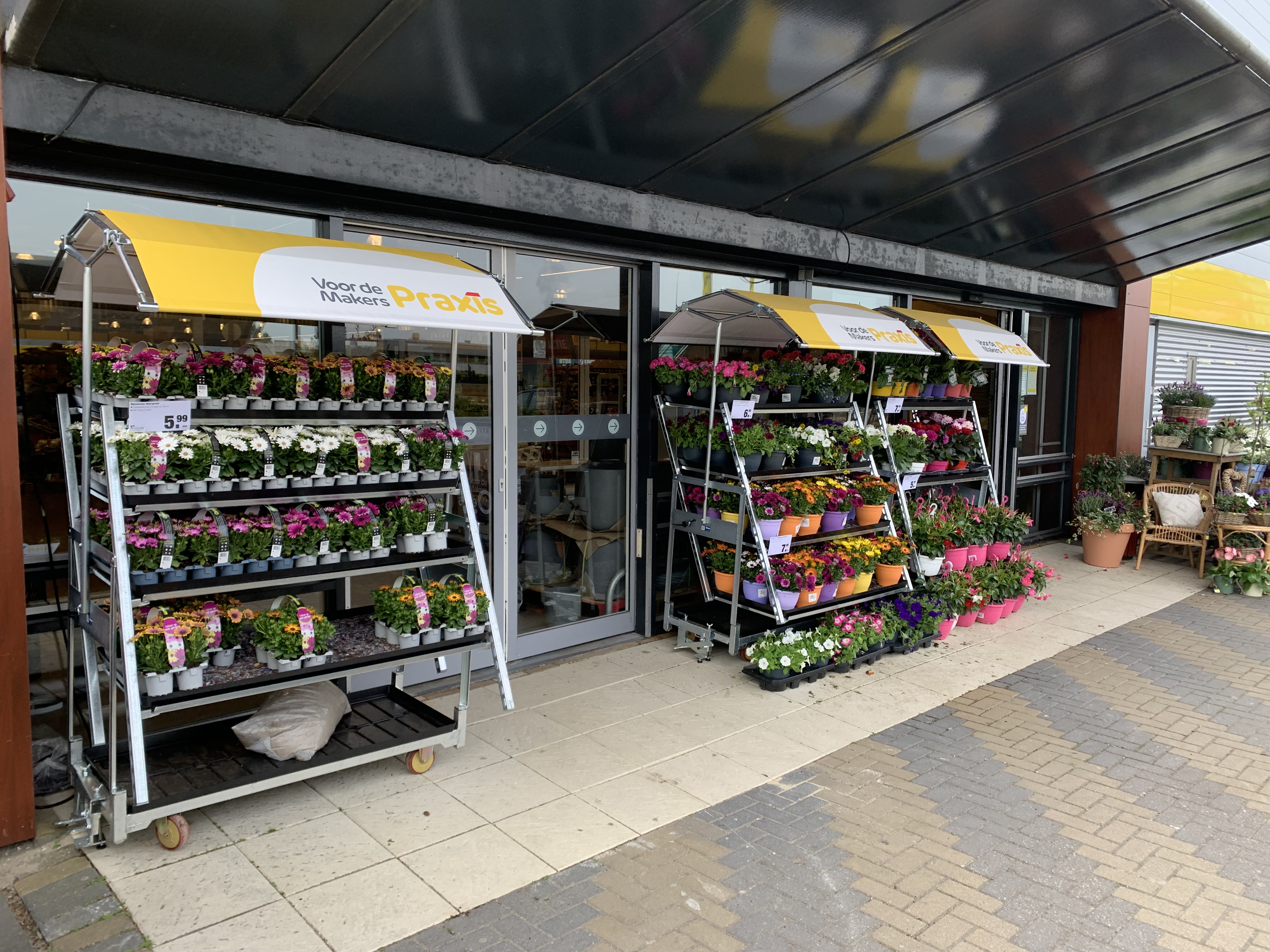 Einer der führenden Baumärkte der Niederlande, Praxis, verkauft seit Jahren auch immer mehr Beetpflanzen, Sommerblumen und Stauden. Auch hier bietet unser Horti-Display mit dem Dach im Hausstil einen Mehrwert in Bezug auf die Präsentation und damit mehr Umsatz sowie eine bessere Qualität der Pflanzen sowohl zum Zeitpunkt des Verkaufs als auch letztendlich beim Kunden zu Hause.
