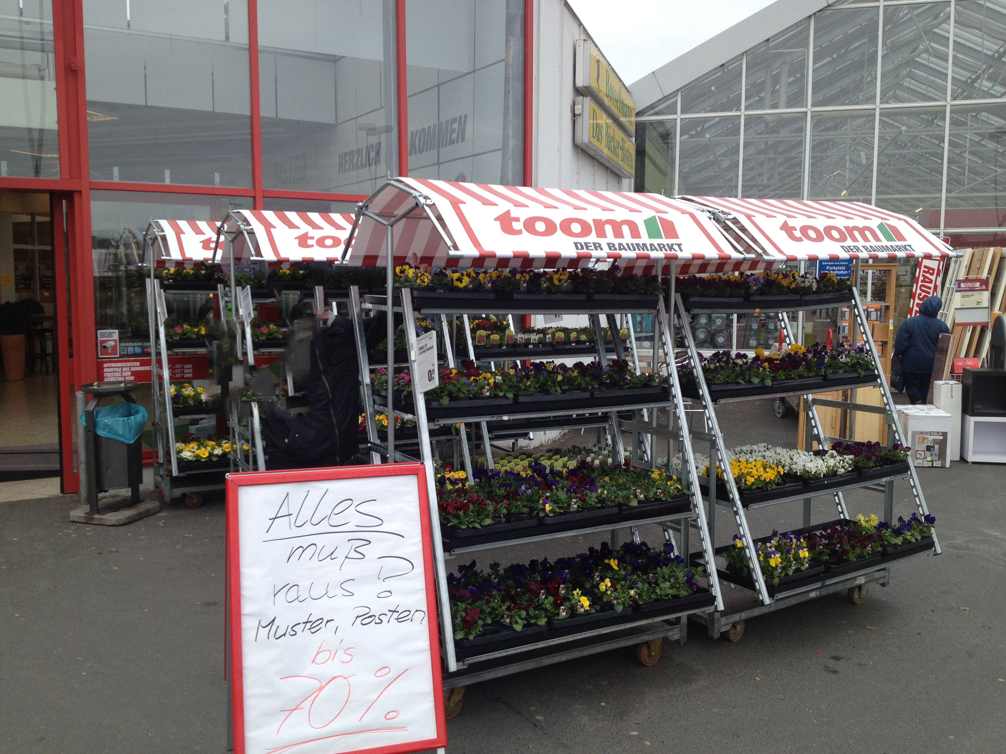 Toom Baumarkt, einer der größten und führenden Baumärkte in Deutschland, bat uns 2013 um Unterstützung bei der Überlegung, wie sie ihr Pflanzensortiment im Außenbereich besser präsentieren können. Neben besseren Verkaufszahlen war es auch eine Anforderung, die Qualität der Pflanzen zu erhalten, da zu viele aufgrund einer zu geringen Umschlagshäufigkeit in Kombination mit Wetterbedingungen und nicht optimaler Bewässerung weggeworfen wurden.