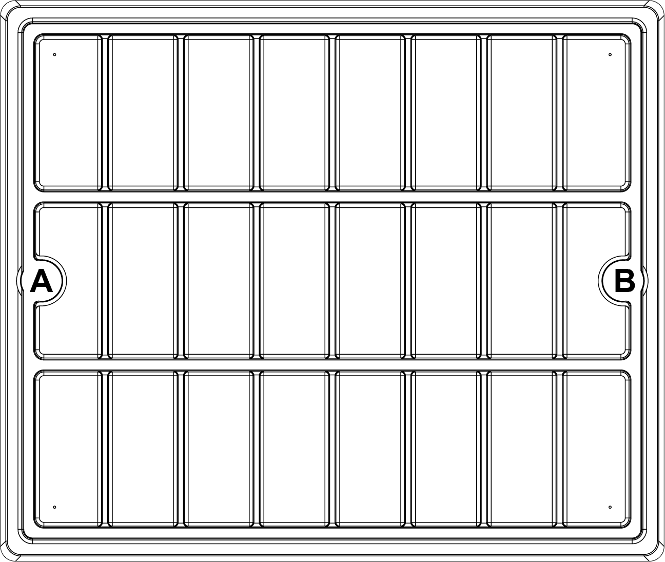 Die Wasserwannen können mit verschiedenen Produkten aus unserem Horti-Flow Sortiment erweitert werden. Bei Bedarf können wir Löcher für die Zu- und/oder Ableitung des Wassers bohren. Die mögliche(n) Position(en) dieser Bohrungen können Sie der Abbildung unten entnehmen und bei der Bestellung in den Optionen angeben.